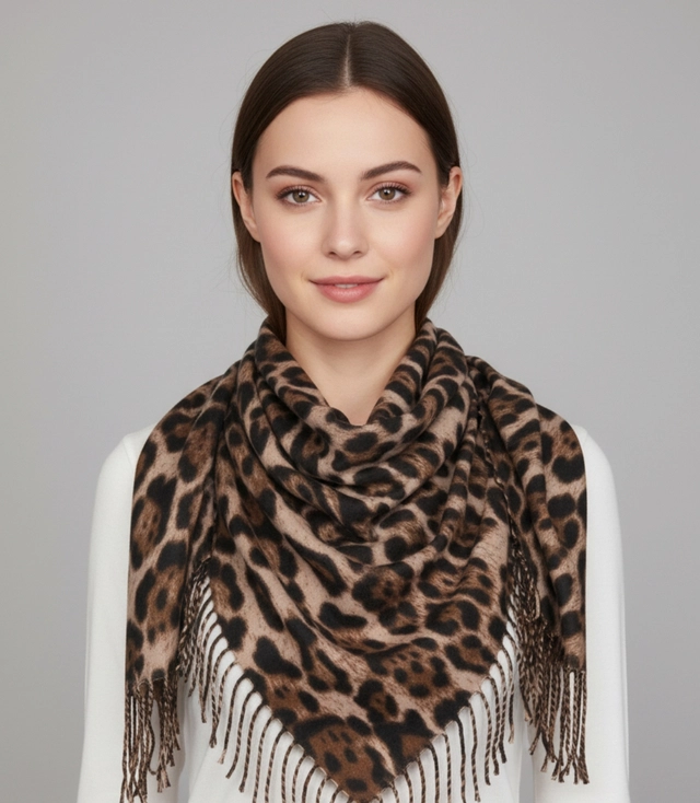 Ciepła chusta szal szalik w panterkę z frędzlami