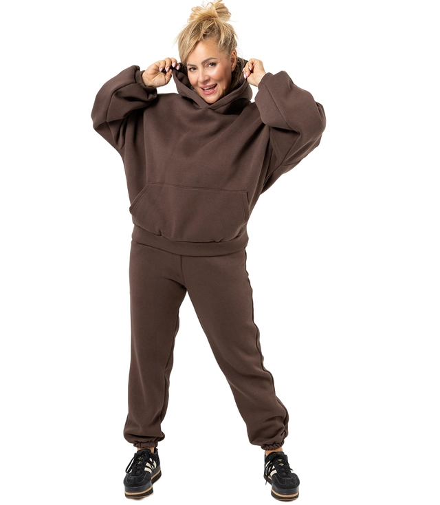 Ten dwuczęściowy, ocieplony komplet dresowy to połączenie najnowszych trendów z niezrównaną wygodą. Gruby, mięsisty materiał sprawia, że jest to idealna propozycja na chłodne dni.