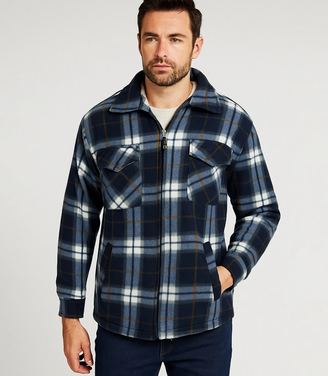 Ciepła polarowa koszula męska w kratę ocieplana futerkiem
