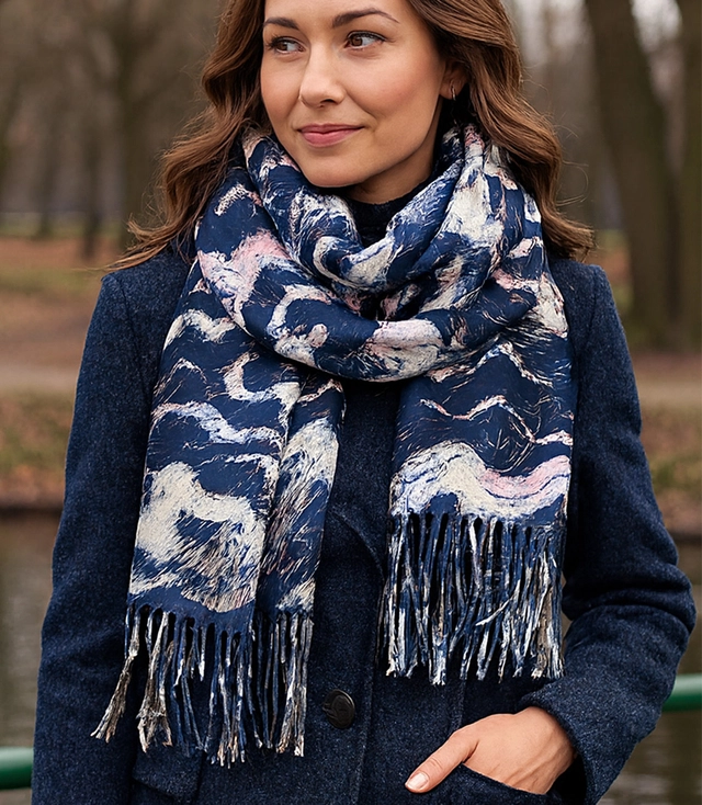 Szal damski z dekoracyjnym wzorem fal – subtelna elegancja w codziennym wydaniu