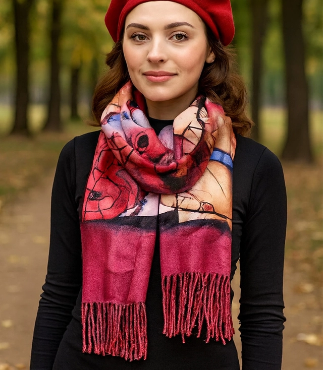 Szal damski z motywem abstrakcyjnym frędzle