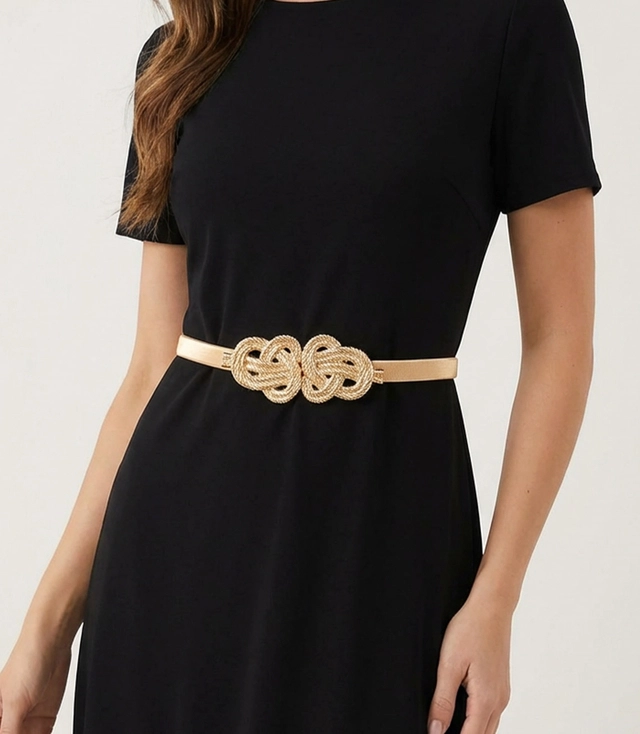Ten ozdobny pasek damski to świetny sposób na dodanie szyku każdej stylizacji. Elastyczna konstrukcja na sprężynce oraz dekoracyjny element z przodu sprawiają, że pasuje zarówno do eleganckich sukienek, jak i bardziej codziennych zestawów, subtelnie podkreślając talię.