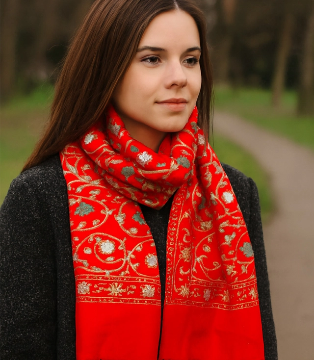 Subtelny roślinny deseń nadaje szalowi wyjątkowego charakteru i świetnie komponuje się z eleganckimi płaszczami, prostymi swetrami czy sukienkami. Delikatne frędzle dodają lekkości, tworząc efekt luksusowego dodatku w stylu boho chic. To doskonały wybór dla kobiet ceniących ponadczasowy szyk – sprawdzi się jako pomysł na prezent oraz must have w szafie każdej miłośniczki mody.