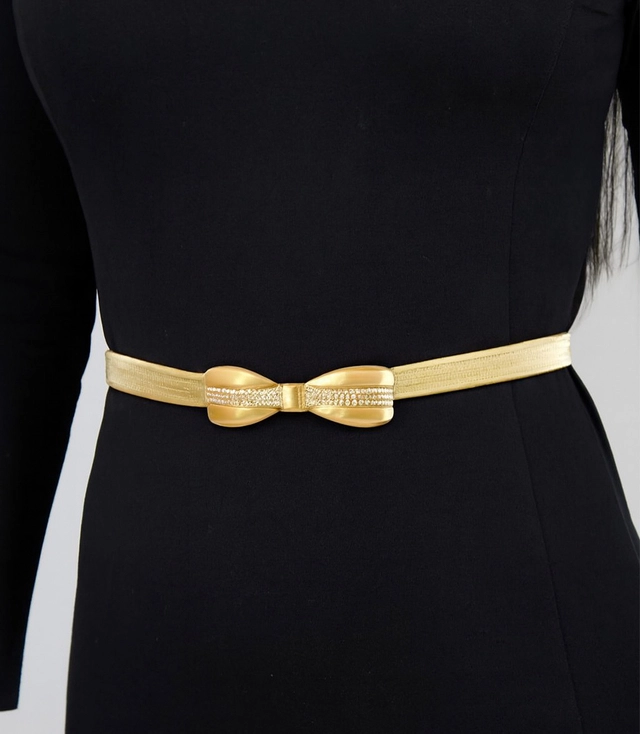 Stylowy, damski pasek z ozdobną klamrą w formie kokardy to biżuteryjny dodatek, który natychmiast odmieni każdą sukienkę. Wykonany w całości z wysokiej jakości metalu, pięknie układa się na sylwetce, subtelnie ją modelując. Elastyczna konstrukcja oraz zakres długości ok. 55–95 cm sprawiają, że pasek wygodnie dopasowuje się do talii, nie uciskając i pozostając na swoim miejscu przez cały dzień.
