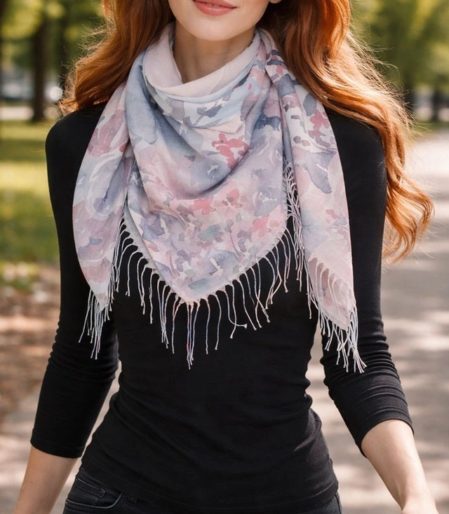 Damska chusta z kwiatowym wzorem 100x100 to dodatki, które od razu dodają stylizacji klasy i subtelnej kobiecości. Delikatny motyw kwiatów ułożony wokół brzegów materiału tworzy efektowną ramę, która pięknie prezentuje się zarówno na ramionach, jak i zawiązana na szyi. Kwadratowy format 100x100 cm pozwala dowolnie eksperymentować ze sposobem wiązania – od eleganckiego okrycia do wieczorowej sukienki po luźno przewiązany szal do płaszcza czy kurtki.