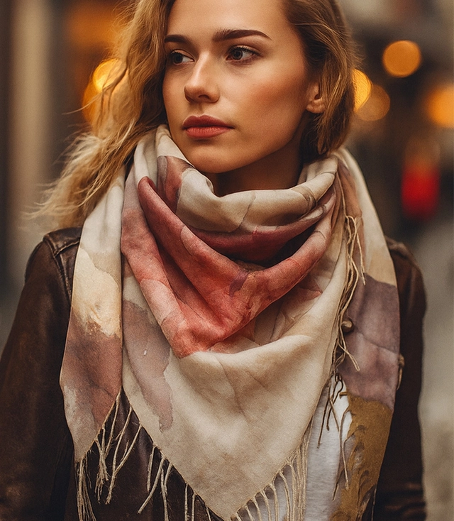 Wykonana w 100% z miękkiego poliestru chusta jest przyjemna w dotyku, łatwa w pielęgnacji i odporna na zagniecenia, dzięki czemu idealnie sprawdza się w codziennym użytkowaniu i w podróży. Finezyjne frędzle na brzegach dodają lekkości i ruchu przy każdym kroku. To doskonały pomysł na elegancki prezent dla kobiety, która ceni ponadczasowe dodatki i lubi podkreślać swój styl subtelnymi detalami.