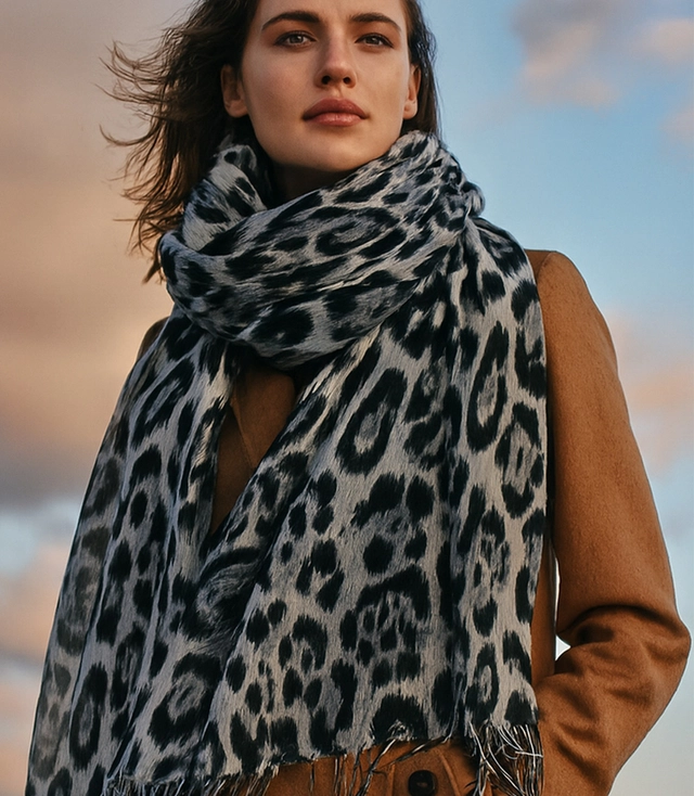 • Styl: elegancki damski szal z modnym, zwierzęcym wzorem panterki