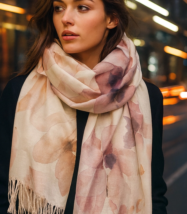 - Rodzaj produktu: damski szal z kwiatowym wzorem