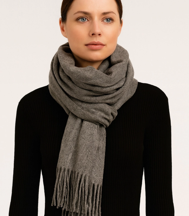 Dzięki dużemu rozmiarowi szal można nosić na wiele sposobów – jako klasyczny szal, narzutkę na ramiona lub modny komin. Idealny zarówno do codziennych, jak i bardziej eleganckich outfitów.