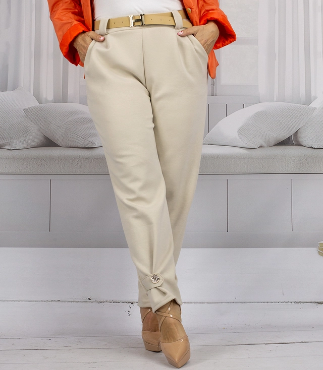 • Klasyczny, prosty krój – nogawka lekko zwężana, która z łatwością dopasowuje się do każdej sylwetki, zapewniając swobodę ruchów, ze stylowym guzikiem do regulacji przy kostce.