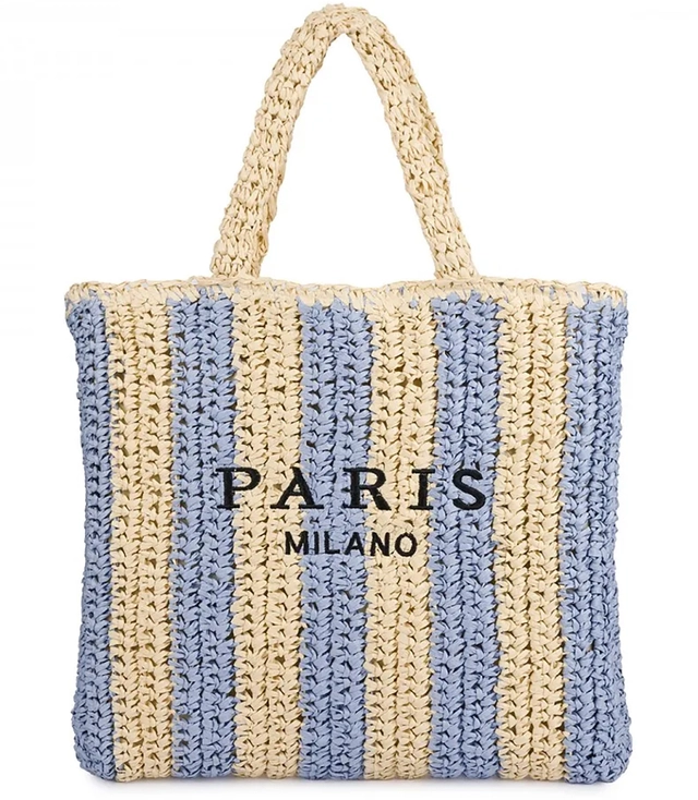 Large plaid shoper bag with vertical stripes with PARIS lettering