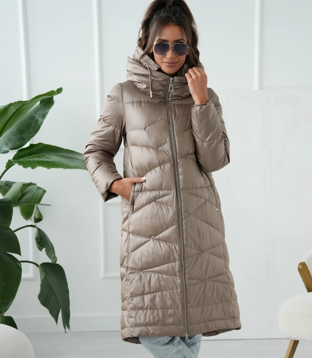 Long elegant women's winter coat insulated delicate sheen REGINA