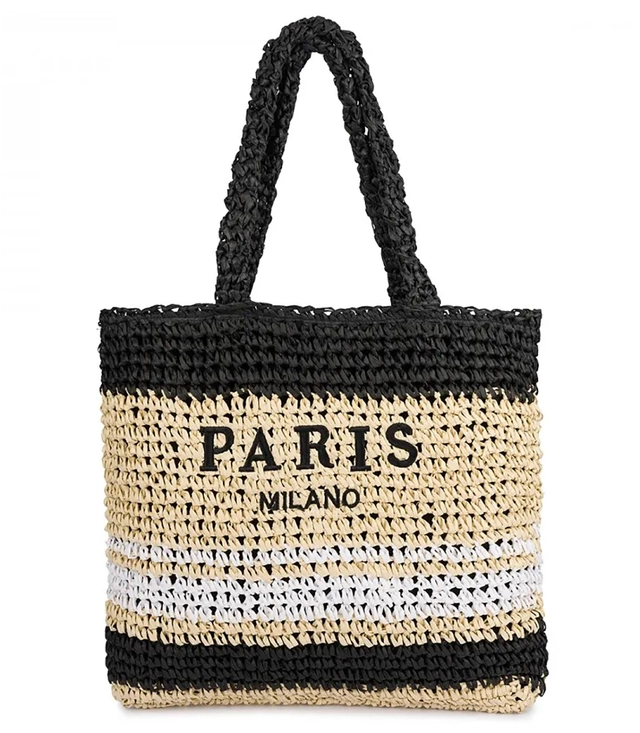 Large plaid shuttle bag with horizontal stripes with PARIS lettering