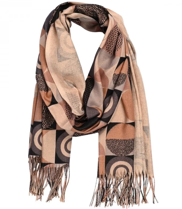 Warm stylish scarf geometric circle pattern soft smooth 180x75 cm