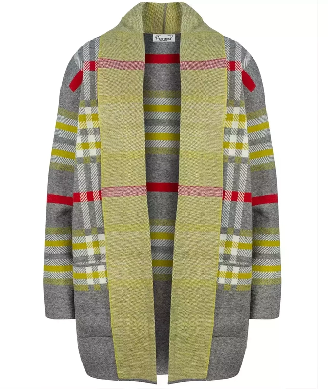 WARM Sweater. Checkered cardigan overlay