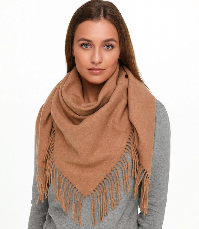 One-color shawl shlik scarf with fringe GRACE