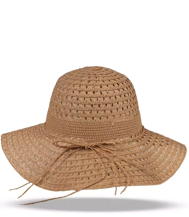 Brown raffia openwork straw hat for women