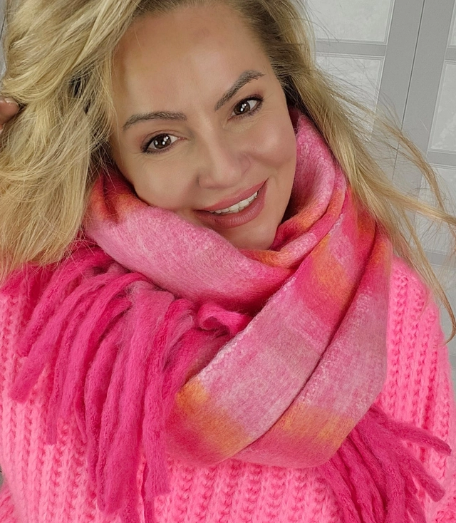 Chusta apaszka delikatna w paski kwiaty Elegancka
