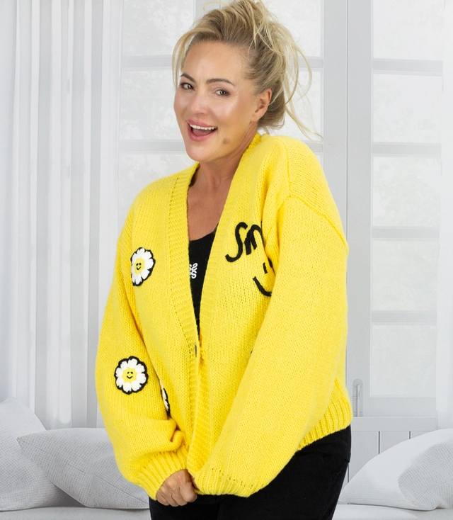 Modny kardigan sweter z naszywkami na guziki