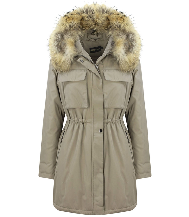 Ciepła damska kurtka zimowa Ocieplana Kaptur z Futerkiem Płaszcz