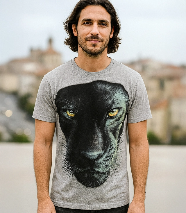 Koszulka męska t-shirt z dużym nadrukiem pantery bawełna