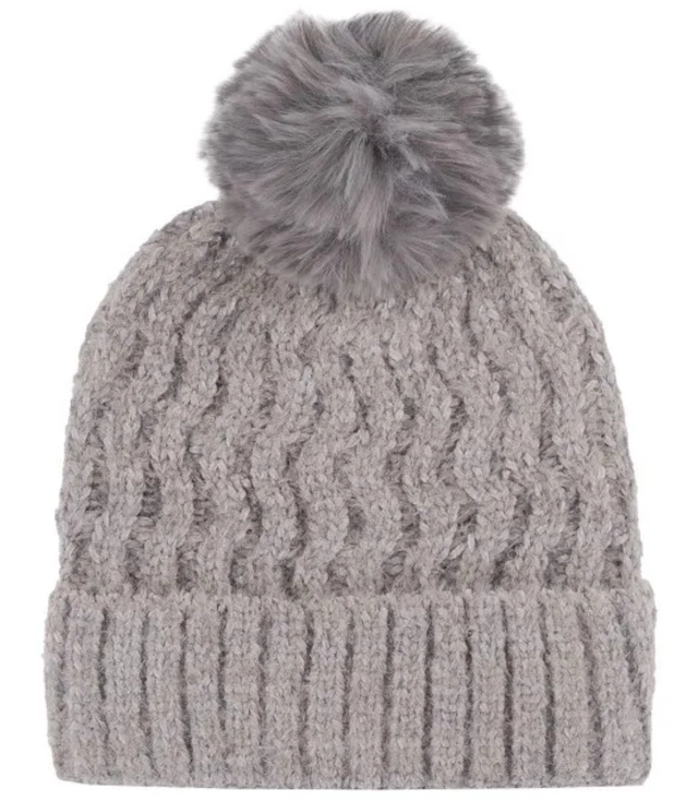 Ciepła czapka damska z pomponem splot warkocz jesienna zimowa