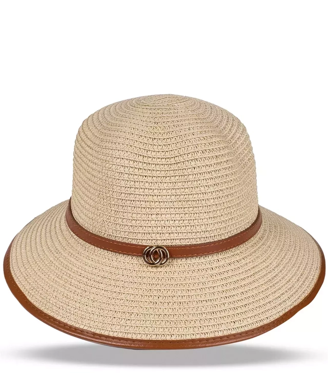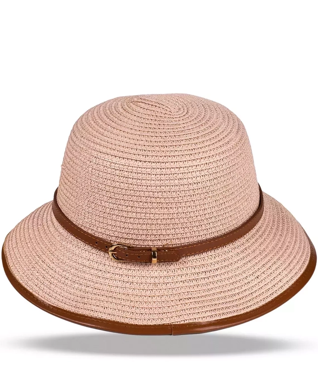 Damski kapelusz słomkowy z rzemykiem z perełkami