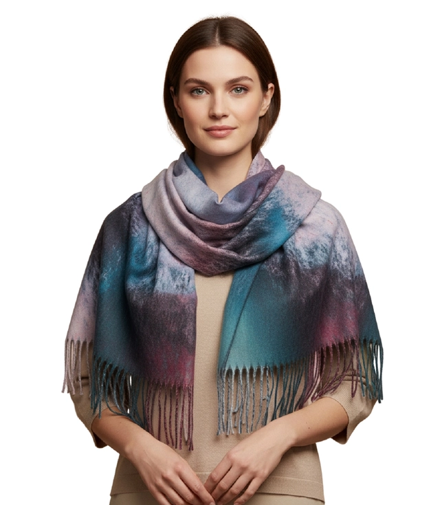 Modna wielokolorowa chusta szal szalik z frędzlami