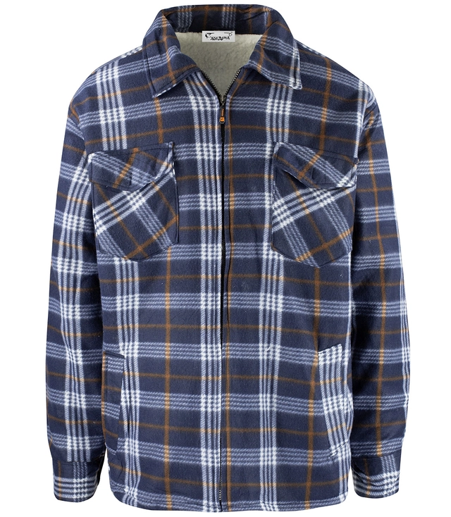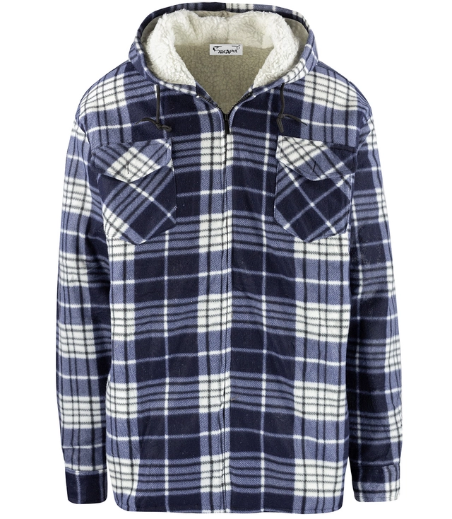 Ciepła polarowa koszula męska w kratę ocieplana futerkiem