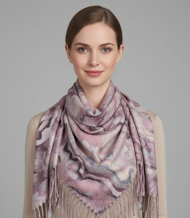 Chusta szal szalik z falistym delikatnym wzorem z frędzlami
