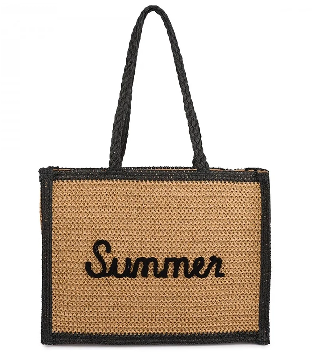 Duża pojemna pleciona usztywniana torba z napisem SUMMER