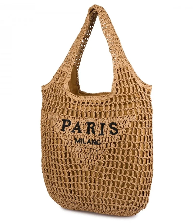 Torebka boho z plecionki z napisem PARIS MILANO