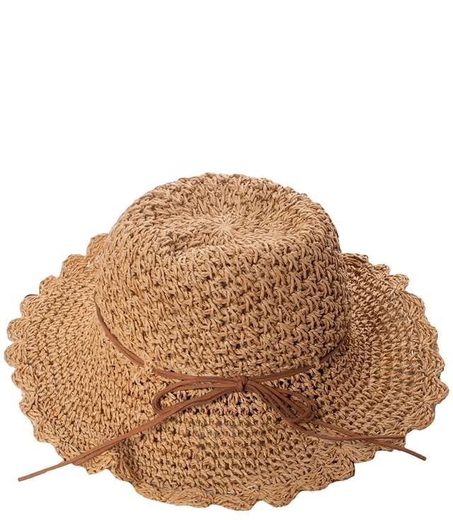 Duży damski kapelusz szerokie rondo ażur rzemyk