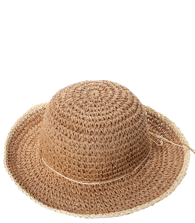 Ażurowy damski kapelusz słomkowy z rafii brązowy