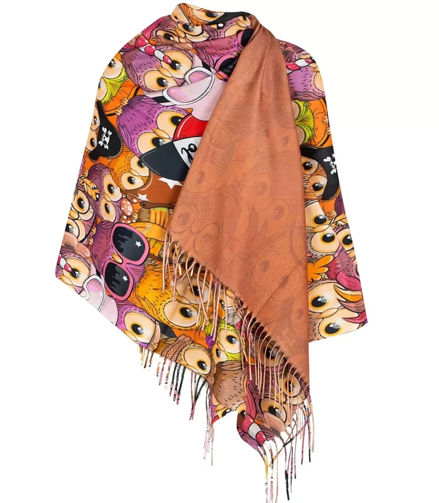 Dwustronny szal szalik chusta koty kotki wiskoza