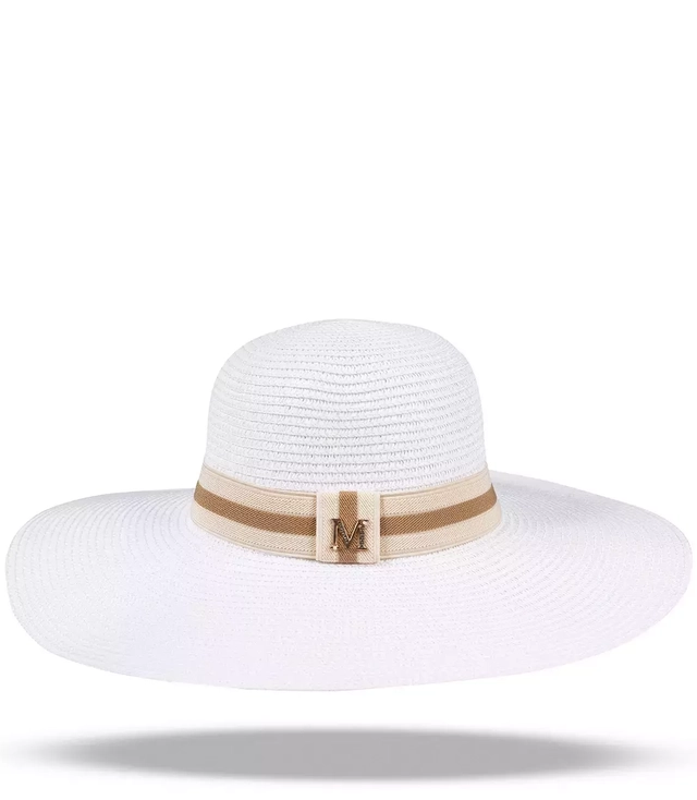 Duży damski kapelusz słomkowy z taśmą i literą M